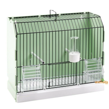 Fournie avec 2 perchoirs, 2 mangeoires et 1 fontaine.